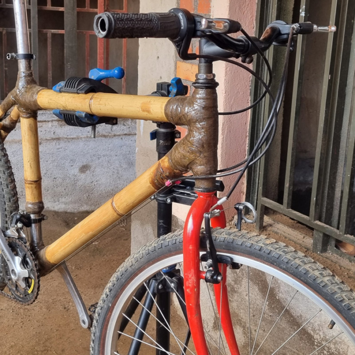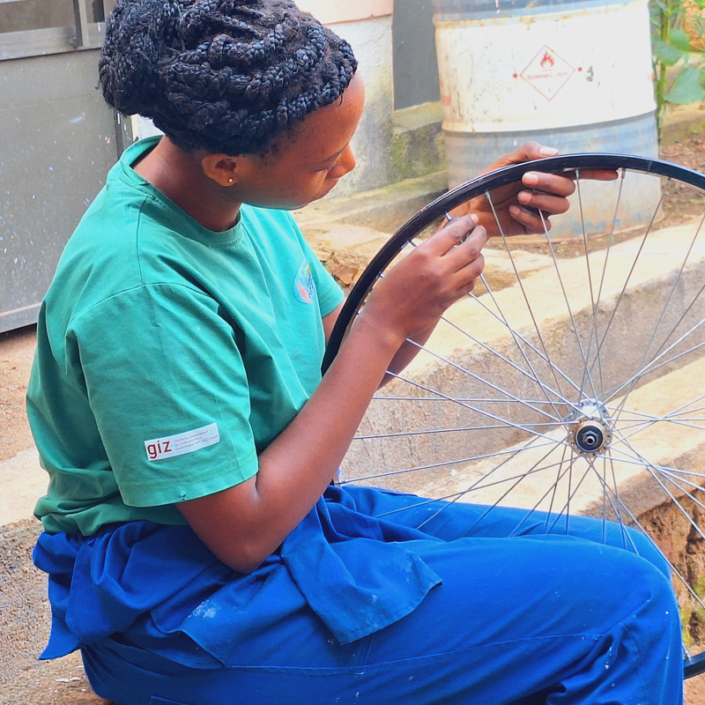 Le manque de matériel et les difficultés d’approvisionnement (vélos, pièces de rechange, etc.) ont poussé cette association à imaginer une solution ingénieuse, fonctionnelle et innovante, en créant ses propres cadres de vélo en bambou. Cette construction demande des personnes spécialement formées à cet effet. De même, l’entretien des cycles, industriels ou artisanaux, demande des spécialistes. C’est un créneau qui peut parfaitement convenir aux jeunes filles/femmes. Mais d’abord, il a fallu former les « formatrices » avec l’appui de professionnels de diverses branches (menuiserie, mécanique, soudure, gestion économique-financière et budgets, etc.) et de spécialistes venus de France et Suisse.